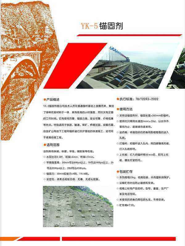 本產(chǎn)品主要同細(xì)砂配制錨固砂漿,用來錨固各種礦井、巷道、人防、混凝土洞室、鐵路、公路隧道及各種地下工程的噴錨支護(hù),基礎(chǔ)加固,錨固,建筑錨釘和其它需要錨固的地方及搶險工程等。該錨固砂漿在短時間內(nèi)可獲得理想的粘結(jié)強(qiáng)度,且后期強(qiáng)度持續(xù)增長,有良好的耐水性及微膨脹性能。各項(xiàng)性能指標(biāo)均優(yōu)于目前市場上所用的灌注料,是一種集錨固和噴漿等功能為一體的新型理想建筑材料。